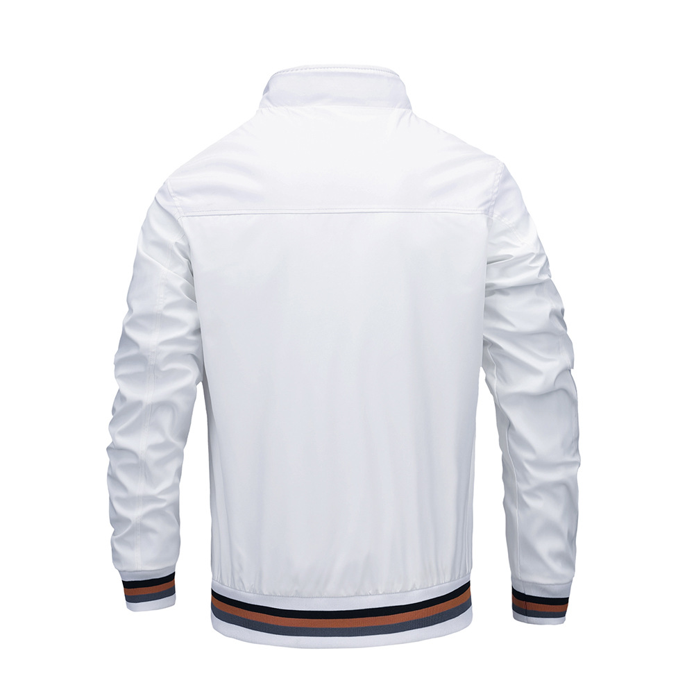 Featuring a classic bomber silhouette with ribbed cuffs, hem, and collar, it ensures a perfect fit and a sleek modern look. The zip-up front, multiple utility pockets, and durable stitching make it ideal for outdoor activities, travel, or casual urban wear.