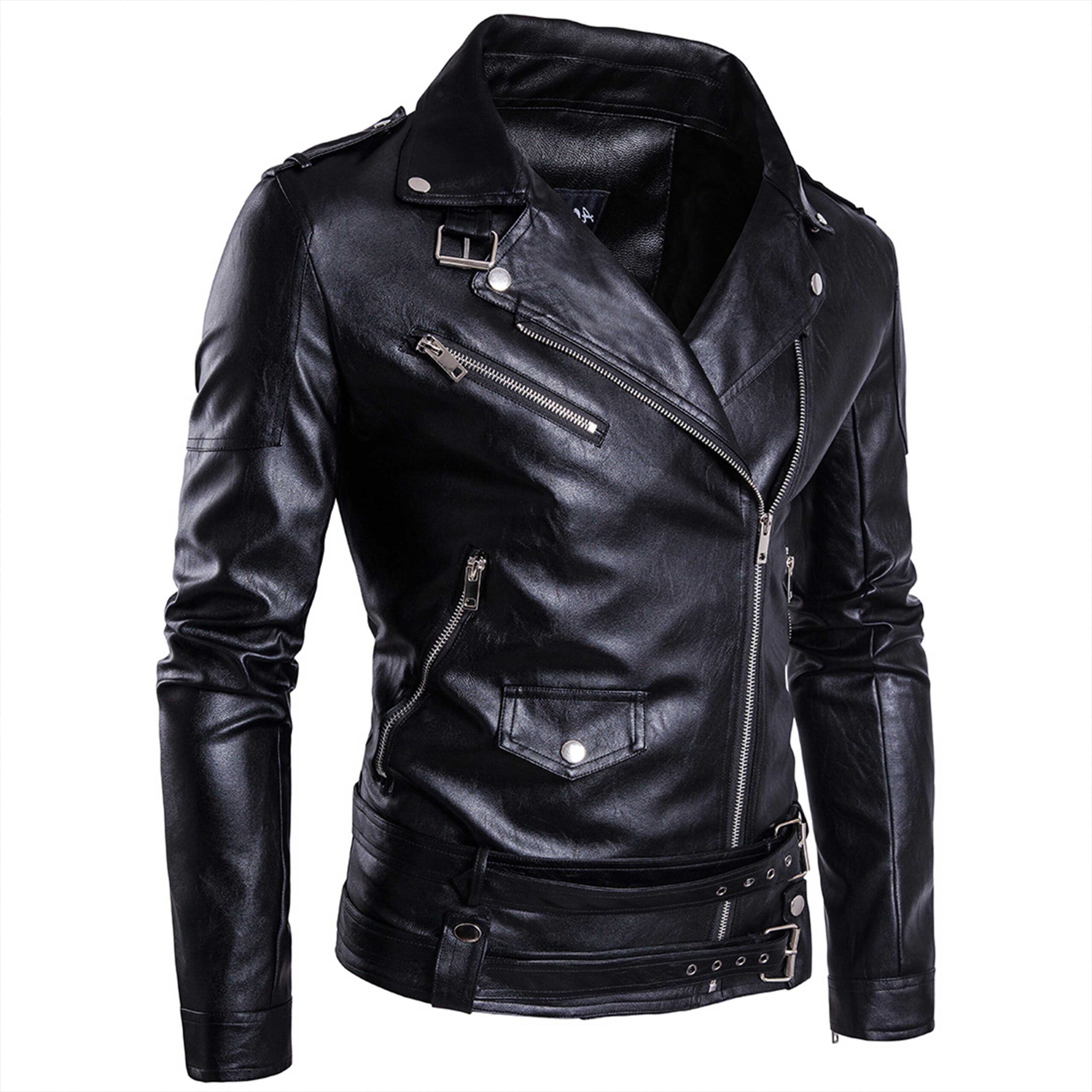 Most Stylish Men's Double Rider Motorbike Casual Jackets PU Leather Zipper & Belt Canvas Fabric on Sale