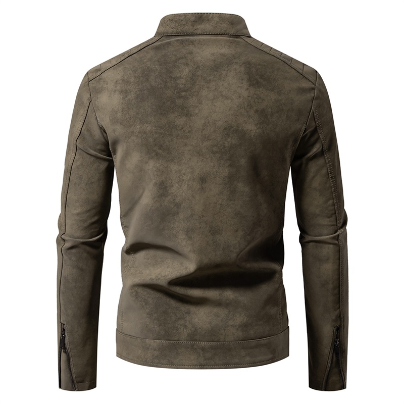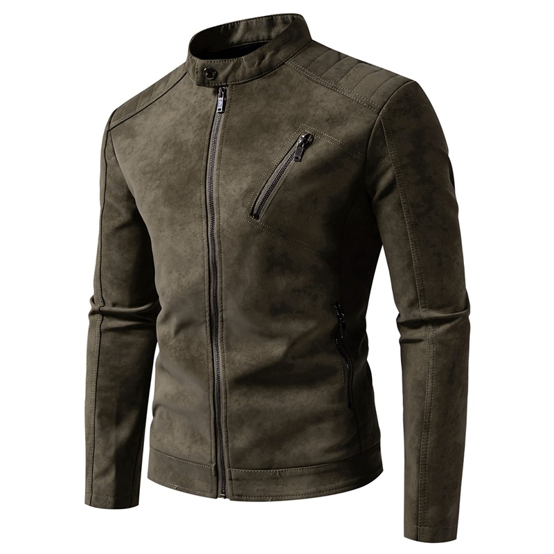 Men’s Stylish Slim Fit Punk Rocker Outerwear Stand Collar Suede Faux Leather Biker Jacket Moto Style Motorcycle Coat for Winter