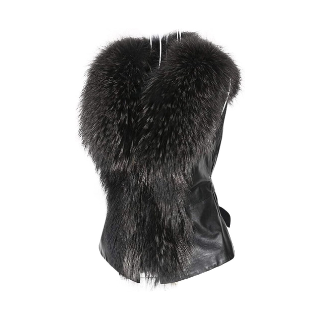 Expertly tailored from premium real leather, the vest is richly lined with natural fur, offering exceptional warmth and an irresistibly soft touch. The plush raccoon fur collar adds a bold, luxurious flair, while the rabbit fur interior ensures a cozy, breathable feel ideal for cold-weather wear.